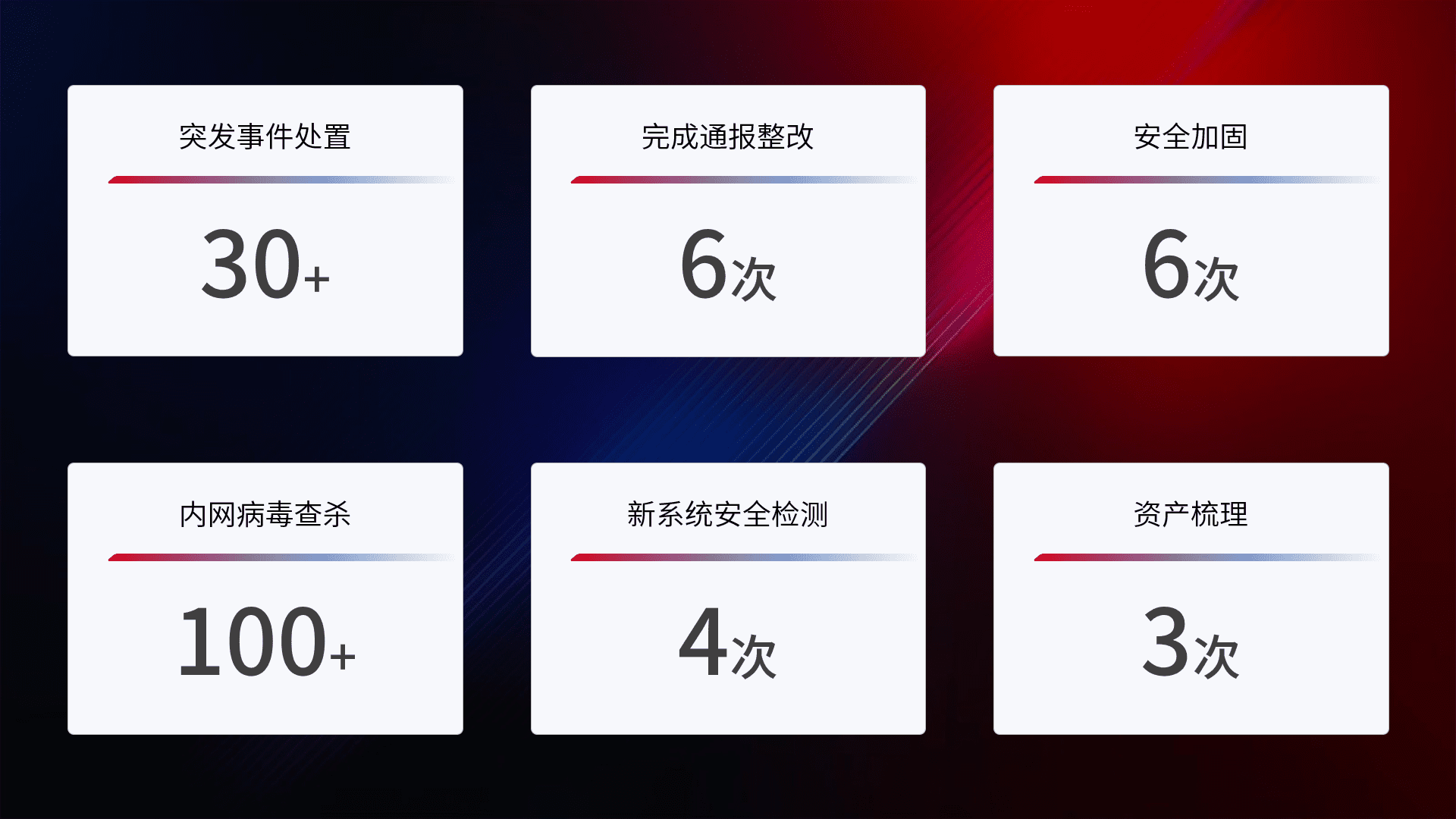 网络安全加固与风险管理:通过技术加固手段,,,,如加强区域隔离,,,,缩减攻击内网横向移动的范围;优化现有网络安全管理制度,,,降低网络威胁暴露面,,,,减少被黑客攻击的可能性。。