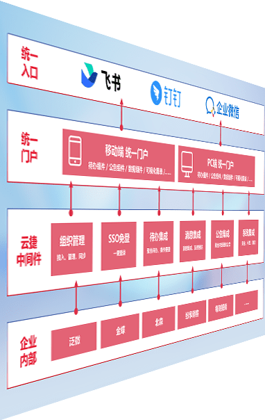 对协作平台提供支持服务,,支持企业应用与协作平台对接,,包含组织同步、、消息集成、、、、待办集成等。。支持目前主流的协作平台:钉钉、、、企微和飞书。。